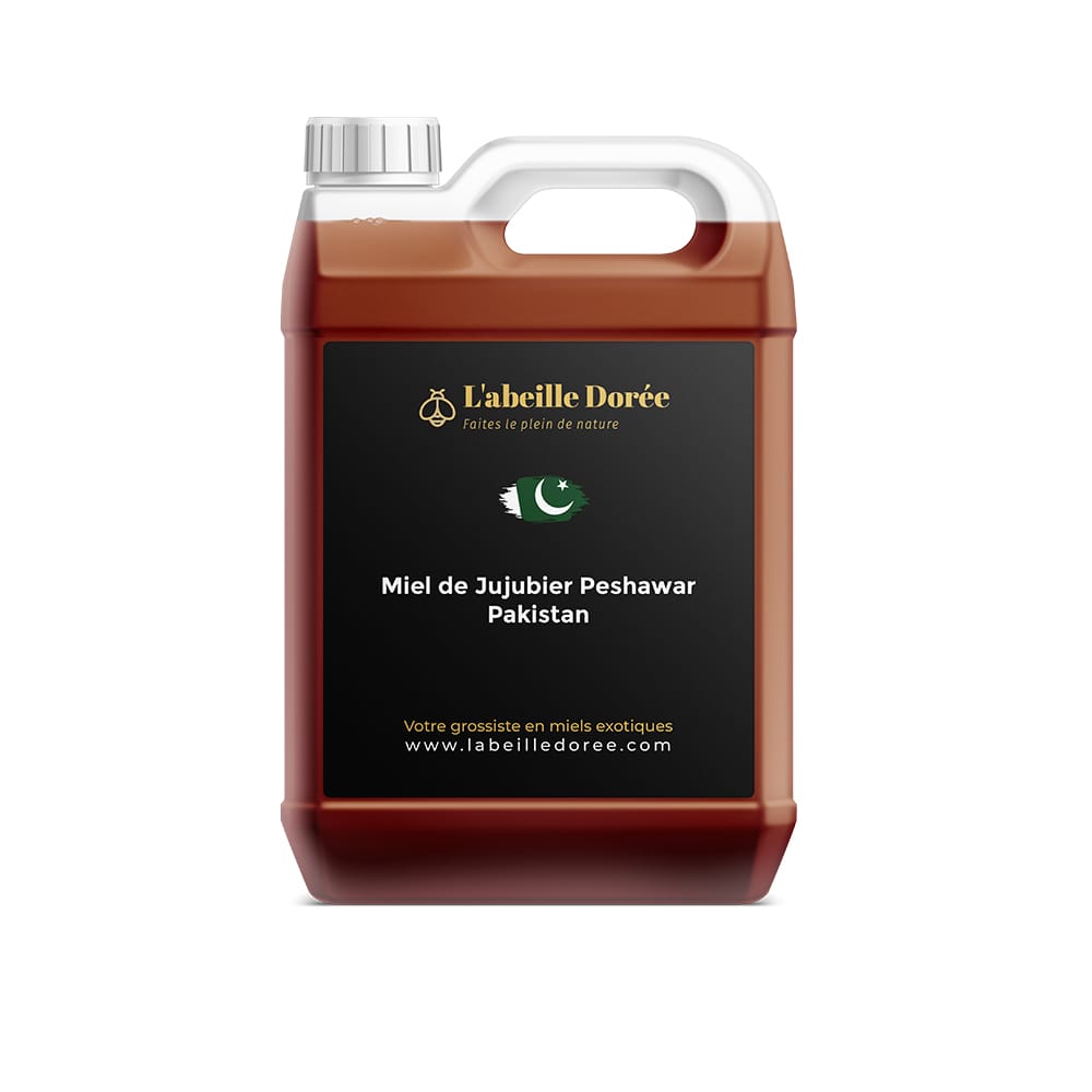 Découvrez le miel de jujubier du Peshawar, un nectar rare du Pakistan, reconnu pour ses vertus immunitaires et son goût riche et caramélisé. Bidon de 7kg